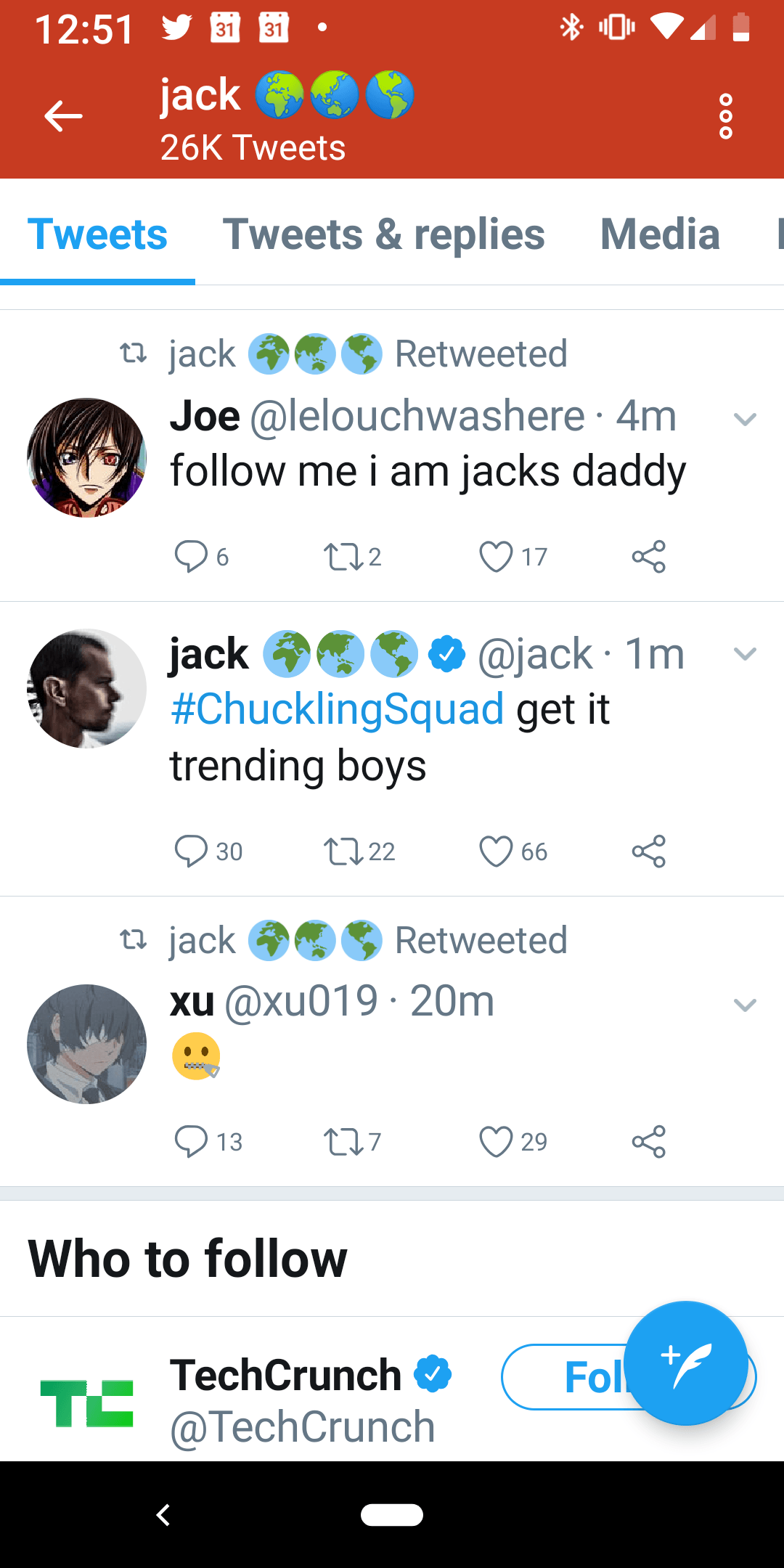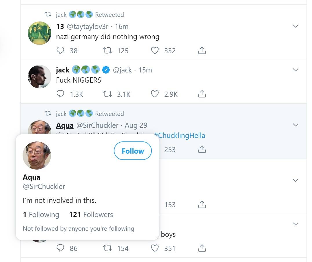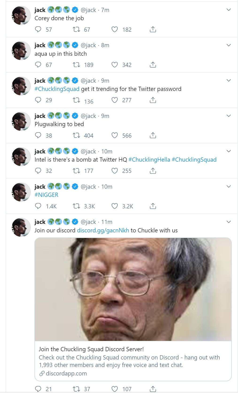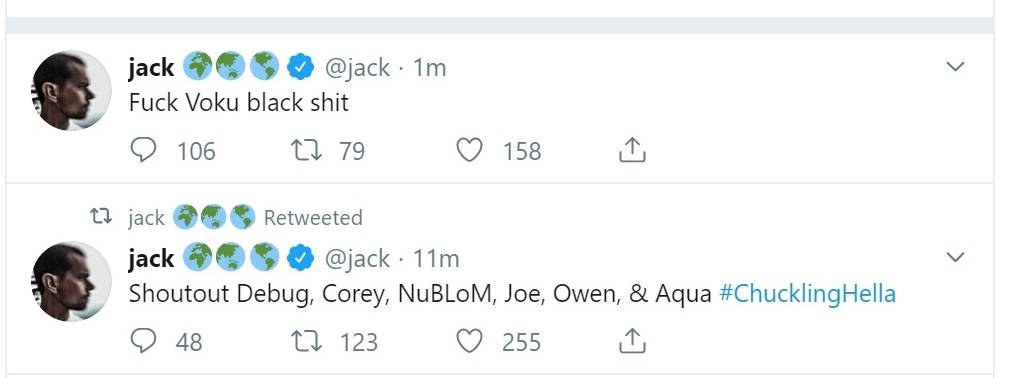 The account, @Jack, tweeted out a series of suspicious tweets, including retweeting a few accounts associated with the hacker group, “Chuckle Gang”.